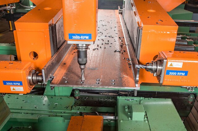 Speedy 25 HP Sub-X spindles on the PeddiSubX-1120 are each equipped with 6-station tool changers. With the ability to mill out copes in just 90 seconds, the PeddiSubX-1120 has revolutionized structural steel drilling technology once again. An operating area of 19-11/16” (500 mm) per spindle allows processing on an entire section of material without spindle downtime.